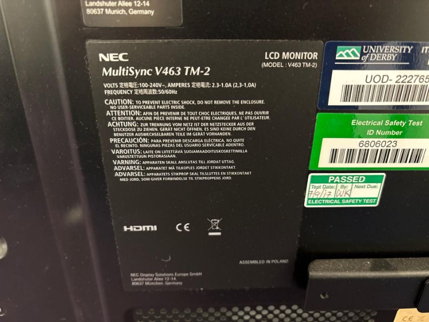 NEC Multisync V463 TM-2 43 inch Screen