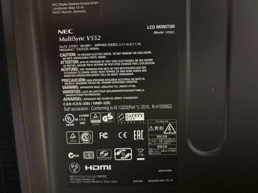 NEC Multisync V552 LCD Monitor 55 Inch,