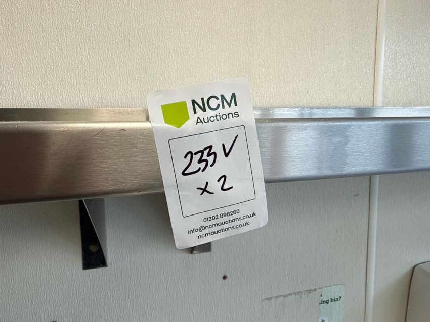 Stainless Steel Wall Shelves X 2 Approximate Dimensions: Height -30cm Width - 193cm Depth - 40cm Ref - 233 Location - Main College Second Floor Production Kitchen