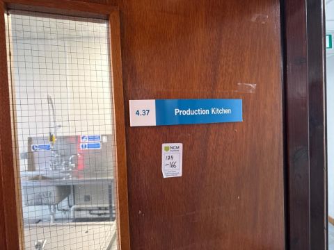 Approximate Dimensions: Height - 92cm Width - 550cm Depth - 252cm A copy of your RAMS and if a business customer a copy of your public liability insurance is required 48hrs before extraction of this item, this must be sent to info@ncmauctions.co.uk Ref -228 Location - Main Colledge Second Floor Production Kitchen