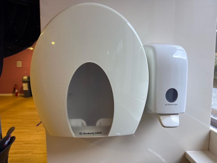 1 x Wooden Unit comprising of double door cabinet, 2 x Deep drawer, Sink, Black Worktop, Kimberley Clark towel & soap dispense and light