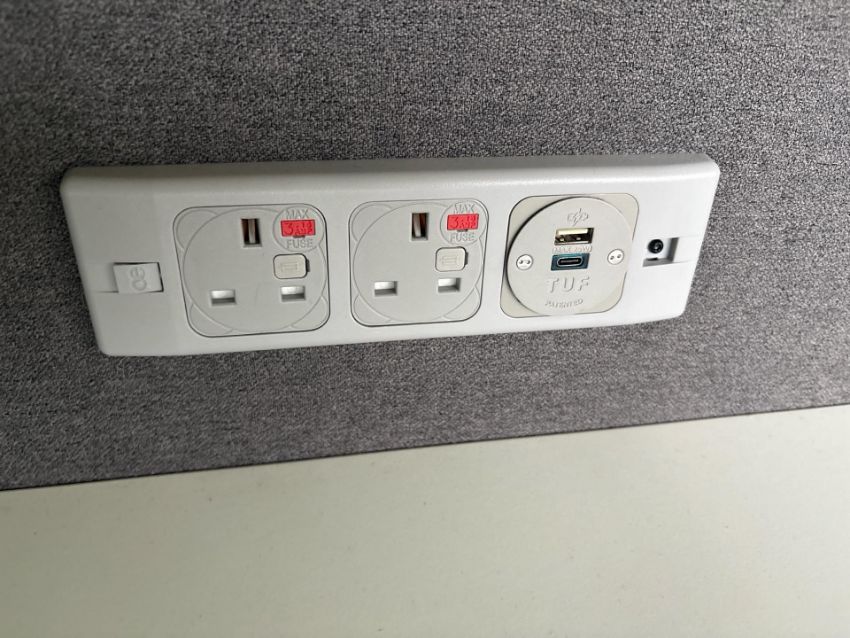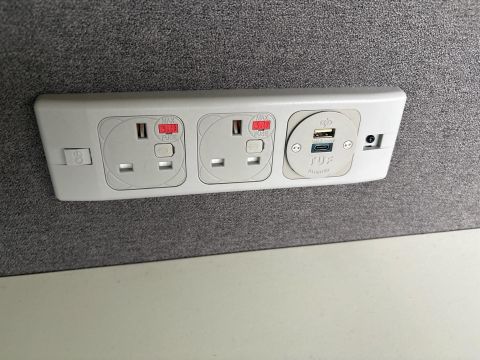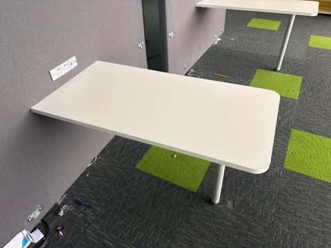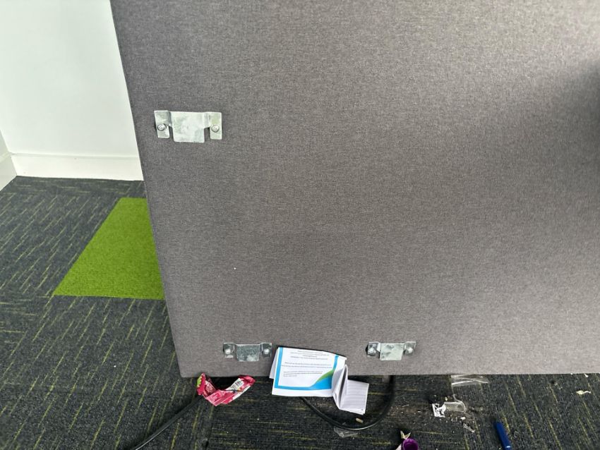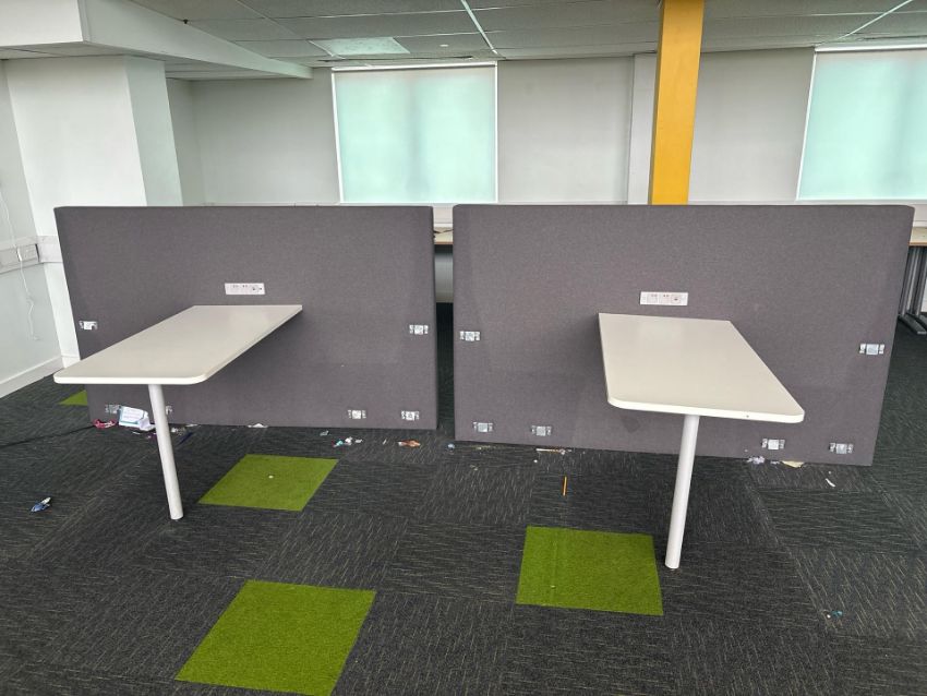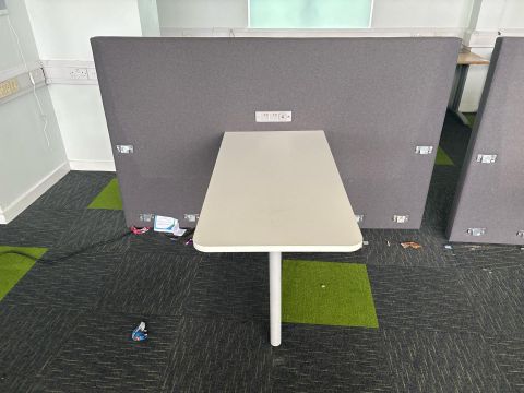 White Desk With Grey Fabric Divider x2