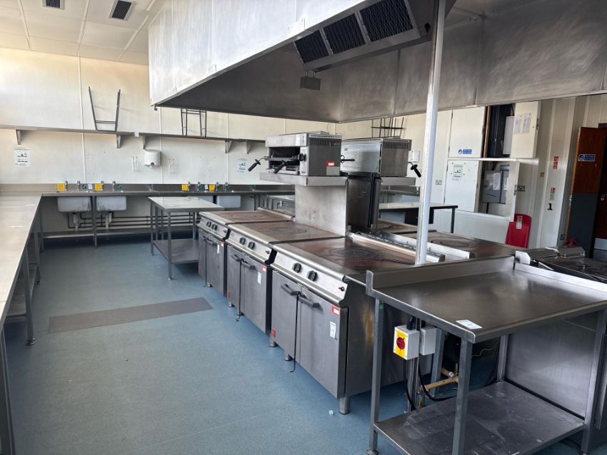 - Items pictured but not described (e.g. background appliances, chairs next to tables, stock on rails, small items on shelves) are not included in the lot.