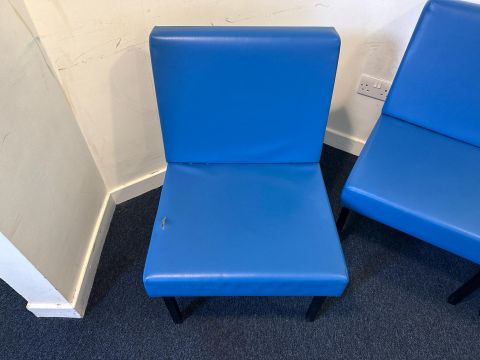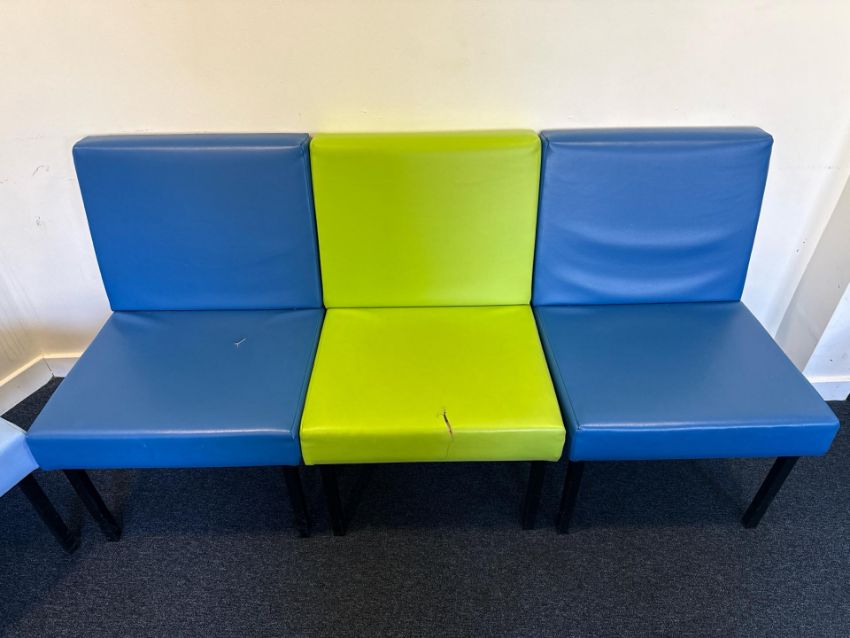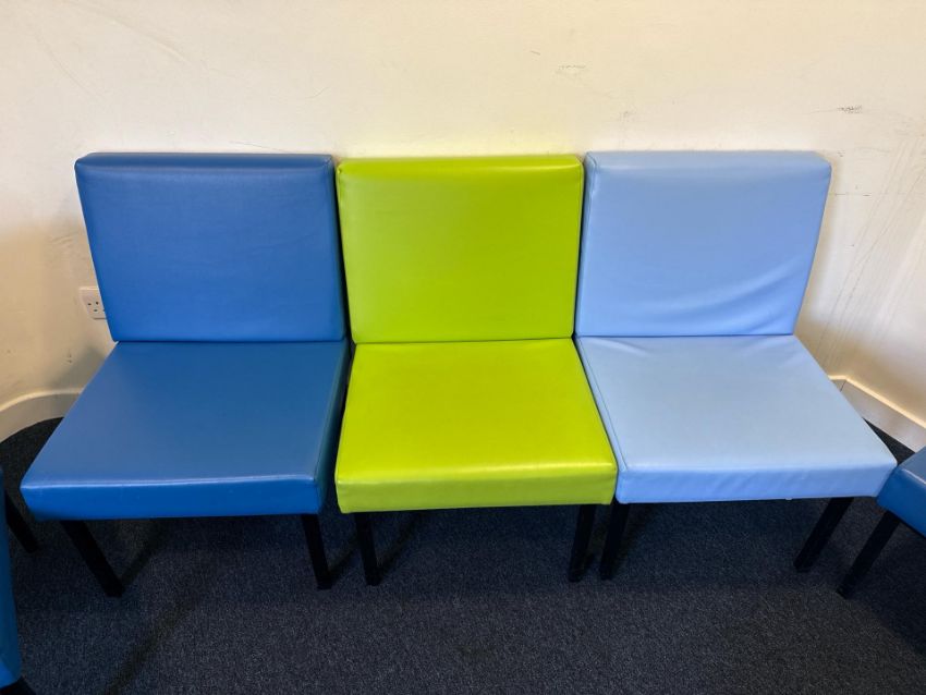 9 x Leather look coloured chairs (some splits to material)