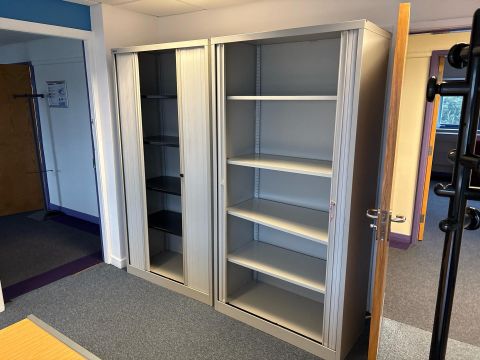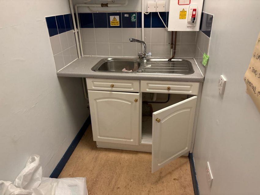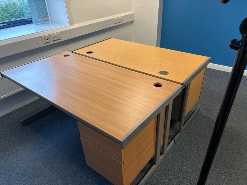 Contents Of Classroom To Include - Brown Wooden Desk x5 Grey Metal Cupboard x3 Metal Sink