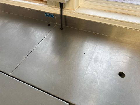 Stainless Steel Table Cable Runs Through Table And Will Need Disconnecting To Remove Table RAMS Required Approximate Dimensions: Height - 97cm Width - 196cm Depth - 60cm Ref - 162 Location - Main College Second Floor Production Kitchen
