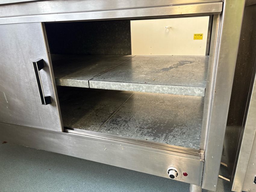 Stainless Steel Hot Counter Untested Has Had Some Holes Cut Out Of The Top Surface Approximate Dimensions: Height - 87cm Width - 150cm Depth - 76cm