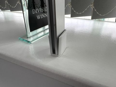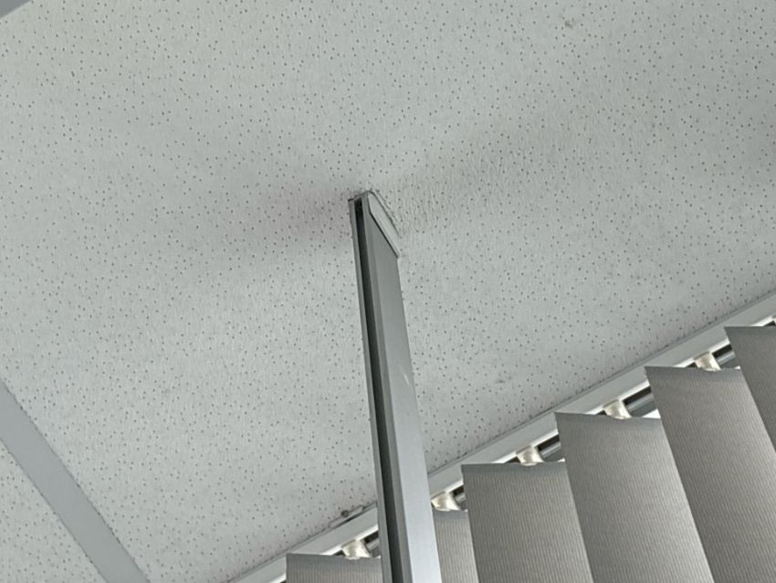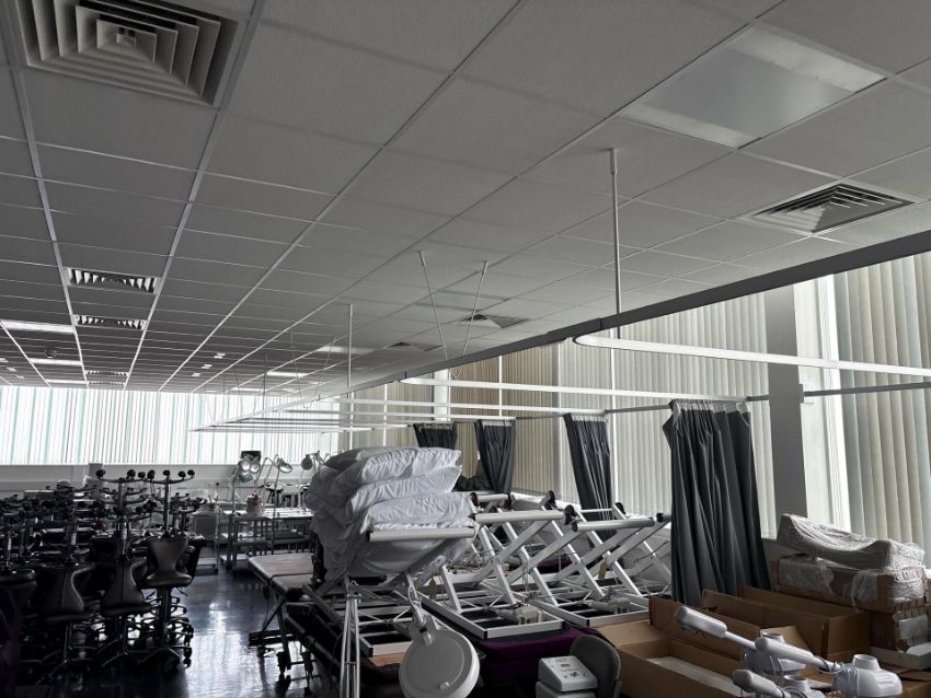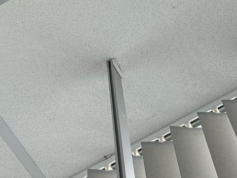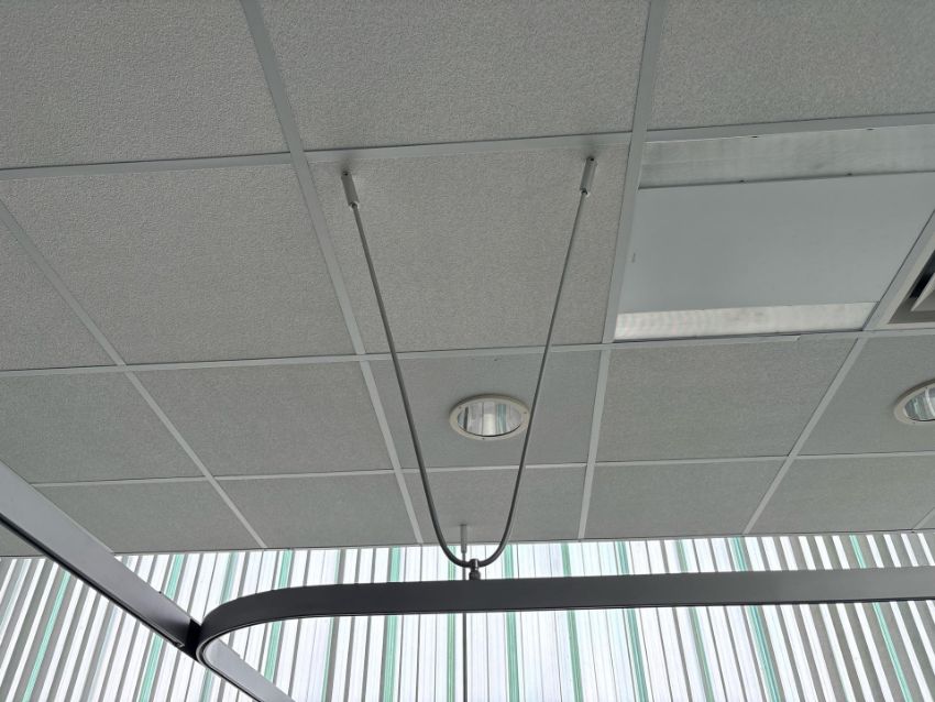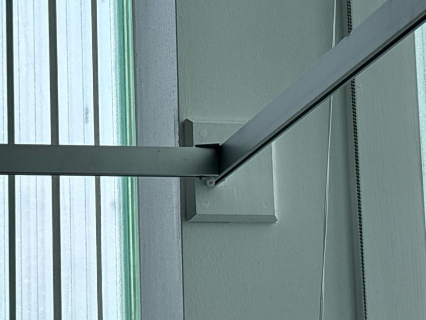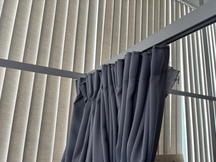 Metal Curtain Rail With Nine Grey Curtains