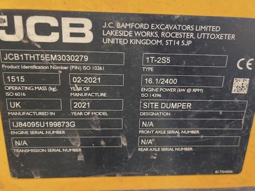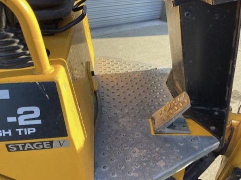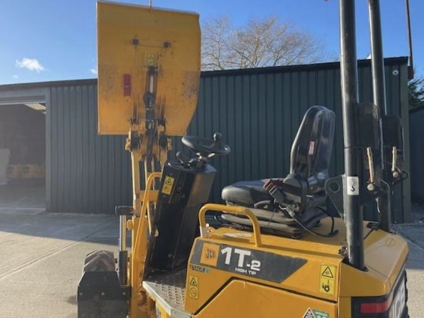 Product Specifications: Payload 1,000kg Enclosure Type ROPS Frame Max. Engine Power 16.1kW Power Type Diesel Skip Tipping Type Front Tip Operating Weight 1,515kg Build Quality & Reliability Huge amounts of expertise and innovation have gone into the new range of JCB site dumpers, built ready to tackle anything the rental market can throw at them. State-of-the-art manufacturing processes and innovative assembly techniques help to achieve the very highest levels of build quality. Skip strength is class-leading courtesy of thick steel side walls and heavy duty steel front and base plates. Heavy duty articulated chassis and skips help your machine to withstand the toughest work sites. Finite element analysis and rig testing ensures superior structural strength and durability. Cold cell testing guarantees starting performance down to -15°C. Safety Exceptional levels of research have gone in to making the JCB site dumper range the safest in the industry, protecting both the operator and your investment. Safety features include green LED beacon with lap belt indication, JCB LiveLink telematics and Hi-Viz yellow painted steps and handles. Simple, effortless access and egress with 3 points of contact available at all times. A folding, hinged ROPS frame is fitted as standard for operator protection in the event of a machine overturn. A new park brake button for extra safety, as well as a retractable Hi-Viz orange lap belt come as standard. Ultimate Productivity With narrow width and high-tip skip the 1T-2 is ideal for builders merchants, landscapers and house builders. A generous heaped skip capacity, small turning circle, high-speed operation and a supremely efficient transmission package. The 16.1kW Stage V engine is renowned for durability and reliability. With a transport weight under 1400kg the 1T-2 can be towed, lowering transport costs and increasing convenience. Wheel-to-ground contact has been maximised thanks to large oscillation angles which aids off-road performance and boosts productivity even further. Ease Of Operation Hydrostatic transmission offers smooth, uninterrupted power delivery, high travel speeds and exceptional off-road performance. Exceptionally easy ground level service access with a tilting seat base providing maximum access to all areas. The seat base is mounted on heavy duty hinges and can be locked for additional security. Maximised manoeuvrability aided by excellent all-round visibility. Active hydrostatic braking technology is a huge advantage if you’re using your dumper on gradients