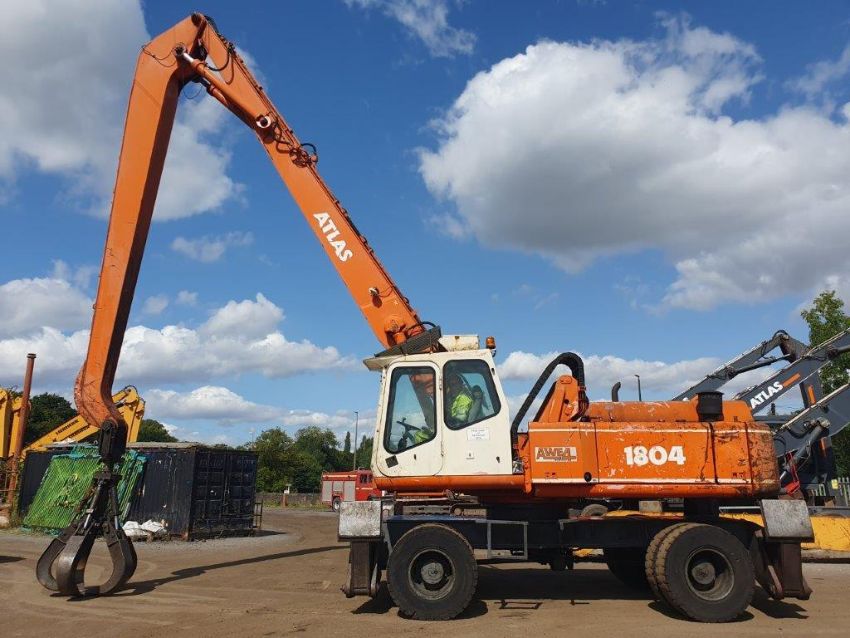 Good condition with hydraulic high rise cab, solid tyres, long reach arm and 5 tine grab