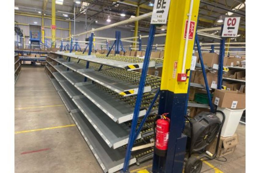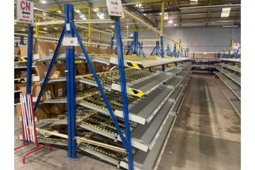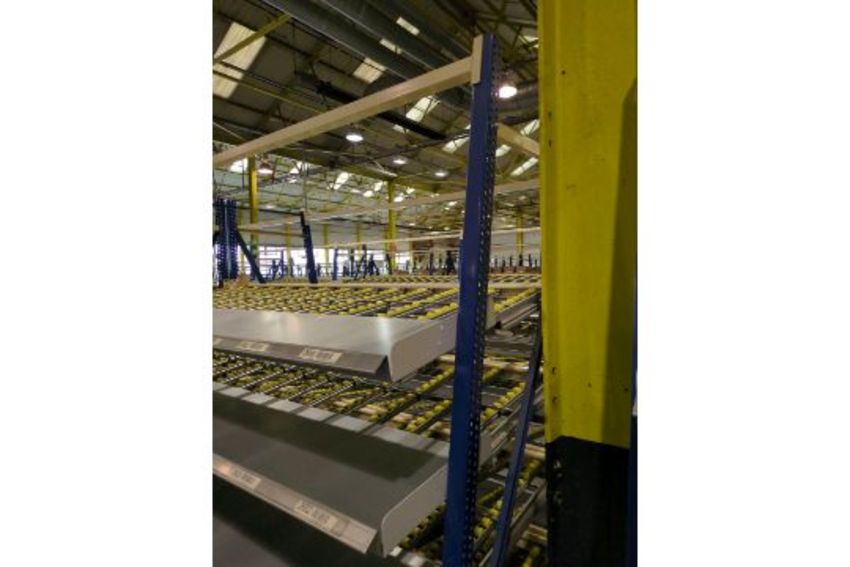 A total of 181 bays of back to back flow racking consists 224 frames 910 flow shelves this racking was sold by ourselves last year to the current owner who dismantled & palletised the racking with the intention of using in their own facility the racking was never installed by the buyer and therefore remains palletised and is now surplus to requirements the images in the lots show the racking as it was installed in its previous environment (Hallmark Cards Distribution Centre, Bradford) and also show the racking now palletised and ready for collection the approximate dimensions of the racking are as follows: frame height: 220cm frame width: 100cm shelf depth: 120cm shelf length: 255cm