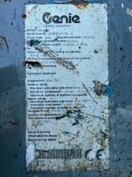 2006 Genie GS2646 Electric Scissor Lift Drives and lifts reach height 9.8m platform height 7.8m stowed height 1.18m length x width - 2.41m x 1.17m platform size 2.26m x 1.15m extended size 3.18m x 1.15m weight 2447kg lift capacity 454kg Location: Burscough, L40 Viewing - Strictly by appointment ONLY Collection - Please bring a hard copy of your collection note & ID to site. The collection note is proof of your payment. Please note it is the buyers responsibility to arrange for decommission (if needed), dismantling & removal of items from site. Once on site you will be required to sign in & then be guided to your lots. You will then be asked to remove the goods & loads your own goods as we cannot help to remove or load goods in anyway. Collection dates - Within 7 days of the auction ending. Payment - Strictly within 2 working days of the auction ending. We strongly advise to pay your invoice by BACS/Faster payment as we cannot release goods without a cleared payment. Paying by card on the payment link can take up to 3 days to clear. Contact - For any enquiries please do not hesitate to contact our team in the NCM office - 01302 898260 or email info@ncmauctions.co.uk
