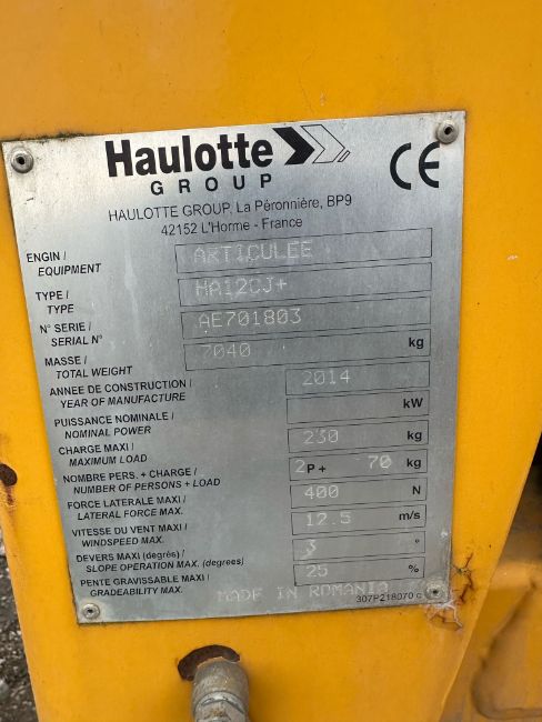 2014 Haulette HA12CJ Cherry Picker runs drives and lifts full specification working height 11.68m outreach 6.94m safe working load 250kg weight 7065kg articulated boom platform height 9.68m closed width 1.2m non marking tyres indoor and outdoor use suitable finished ground condition platform/deck size 1.14m x 0.8m closed length 5.36m rotation 356 degrees electric power Location: Burscough, L40 Viewing - Strictly by appointment ONLY Collection - Please bring a hard copy of your collection note & ID to site. The collection note is proof of your payment. Please note it is the buyers responsibility to arrange for decommission (if needed), dismantling & removal of items from site. Once on site you will be required to sign in & then be guided to your lots. You will then be asked to remove the goods & loads your own goods as we cannot help to remove or load goods in anyway. Collection dates - Within 7 days of the auction ending. Payment - Strictly within 2 working days of the auction ending. We strongly advise to pay your invoice by BACS/Faster payment as we cannot release goods without a cleared payment. Paying by card on the payment link can take up to 3 days to clear. Contact - For any enquiries please do not hesitate to contact our team in the NCM office - 01302 898260 or email info@ncmauctions.co.uk