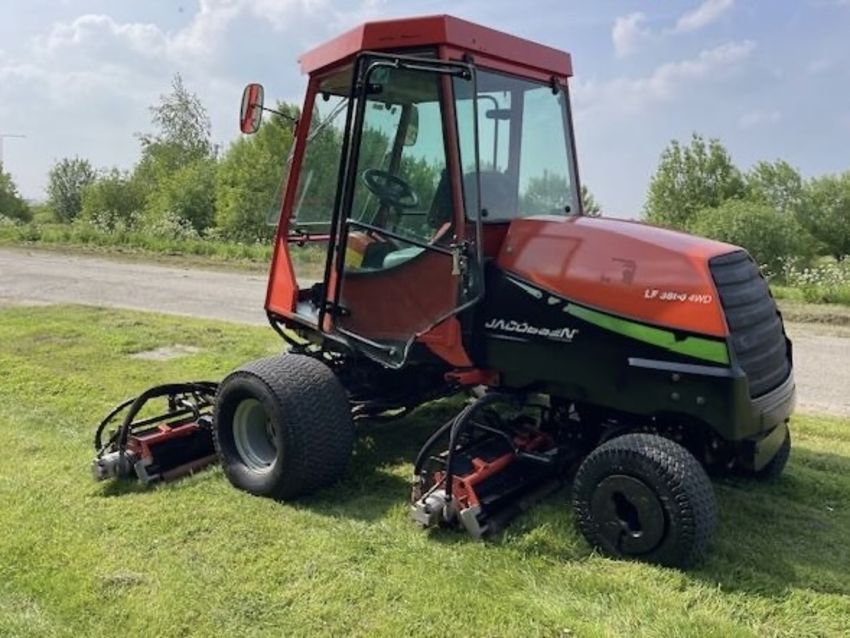 The Jacobsen LF3800 is a fairway mower designed for high-quality cutting and enhanced operator comfort. This lightweight fairway mower LF-3800, has been designed to accommodate a wide range of golf course terrain and grass conditions. They build them around a common platform, using common cutting units and components so that superintendents can ‘mix and match tractors and cutting units as needed. LF-3800 is designed for enhanced operator comfort, along with high-quality cutting. Power steering and tilt steering wheel are standard equipment, as is joystick reel positioning. Jacobsen’s patented FlashAttach reel-mount system permits easy changeover to vertical reels or other bladed reels. Reel-to-bedknife adjustments are made with a single wrench. Independent reel-motor relief valves increase cutting torque with lower hydraulic circuit pressures.