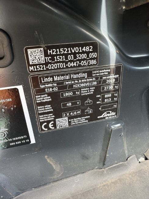2019 Linde 1.8 Tonne Electric Forklift Truck