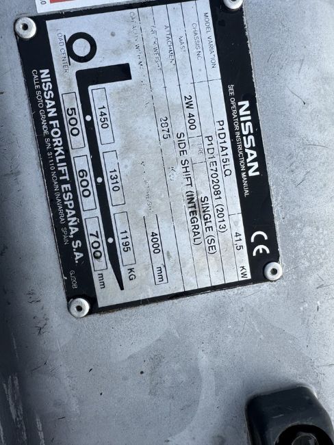2013 Nissan 1.5 Tonne Gas Forklift Truck