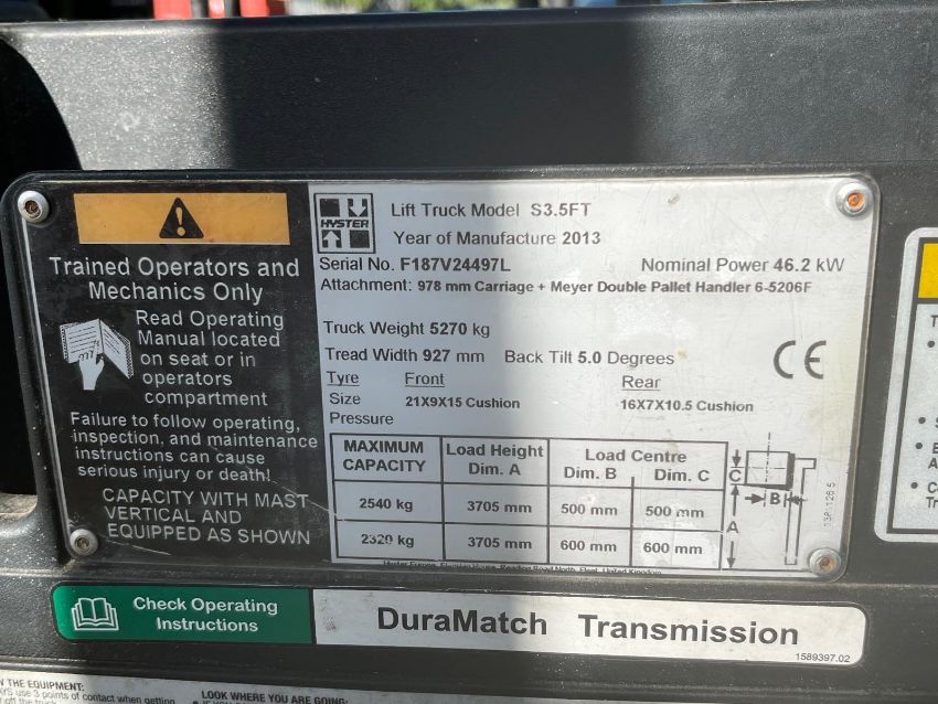 2013 Hyster S3.5FT Forklift, Low reserve 2 Stage 3.7m Mast, 4th Hydraulics, No Forks, 2708 Hours fingertip control runs and drives, light work good brakes service history unknown Location: Corby