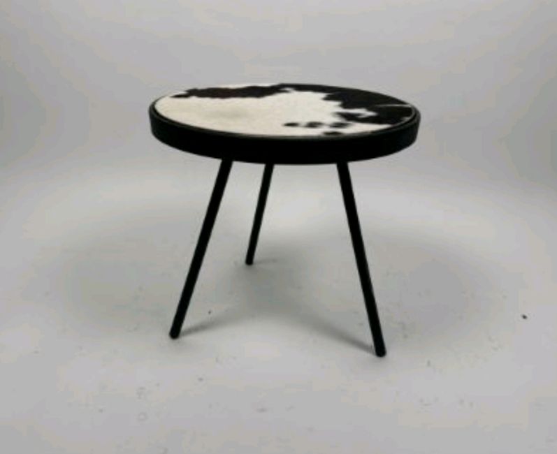 AMARA Circular Side Table Cow Print Fur Top Black