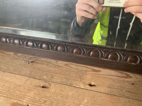 Mirror loose from frame. Minor scrapes round the frame.