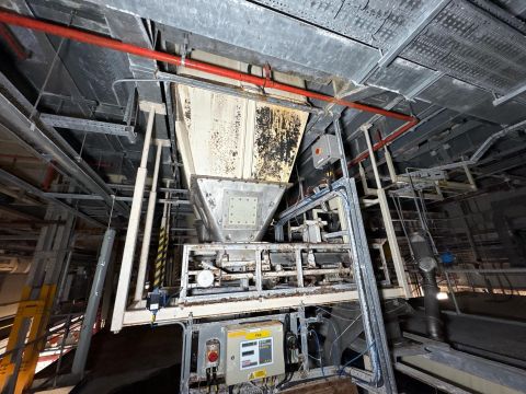 Note weight scales with large hopper and conveyor system