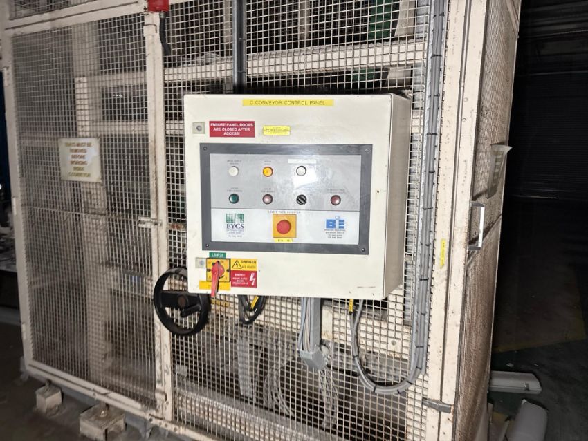Production Line C conveyor to take product to ceiling mounted conveyor.