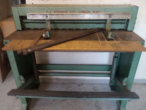 F J Edwards Treadle Guillotine looked after, its original make up has not been altered, looked after throughout the years and the guillotine blade has been sharpened over time. tape measure in shots shows length of Guillotine and length of cutting area and the height of the Guillotine Photo 10 shows the back plate stopper bar with the two steel poles it sits on which is normally attached to the rear of the Guillotine. These have been taken off just so it can sit back against the wall during the clear out. Very heavy item. Will need a vehicle with a tail lift to get this transported, again three people to move. There are double doors and plenty of room in the courtyard to allow for vehicle access and removal. ref: 150825 location, Gedling, Nottinghamshire Collection - Please bring a hard copy of your collection note & ID to site. The collection note is proof of your payment. Please note it is the buyers responsibility to arrange for decommission (if needed), dismantling & removal of items from site. Once on site you will be required to sign in & then be guided to your lots. You will then be asked to remove the goods & loads your own goods as we cannot help to remove or load goods in anyway. Collection dates - Within 7 days of the auction ending. Payment - Strictly within 2 working days of the auction ending. We strongly advise to pay your invoice by BACS/Faster payment as we cannot release goods without a cleared payment. Paying by card on the payment link can take up to 3 days to clear. Contact - For any enquiries please do not hesitate to contact our team in the NCM office - 01302 898260 or email info@ncmauctions.co.uk