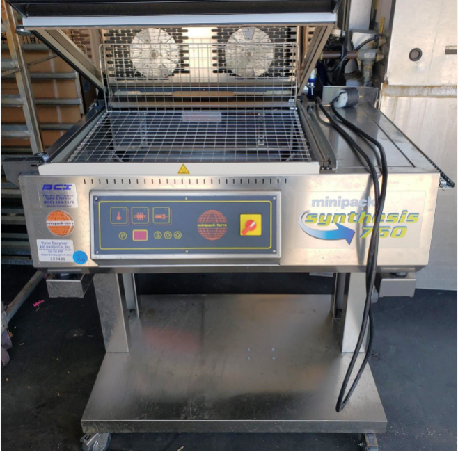 The Minipack-Torre Synthesis 760 is a manual, one-step chamber shrink-wrap machine designed for high reliability and hygiene, particularly in food and FMCG packaging.