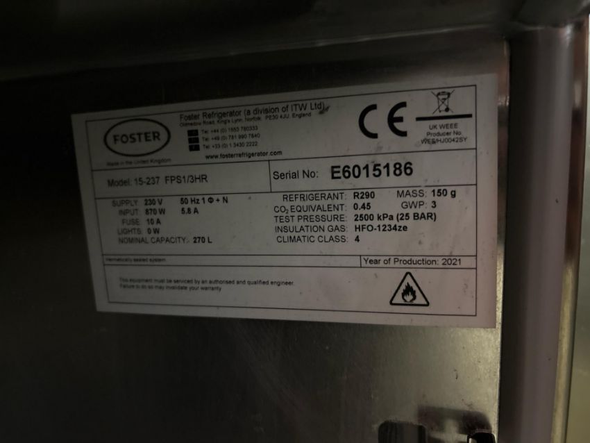 Refrigerant Type/Mass: R290, 150g
