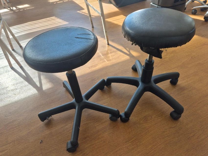 Black Faux Leather Wheeled Stool x2