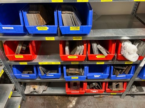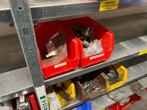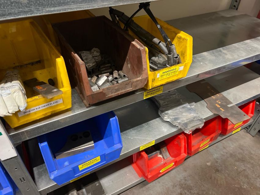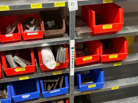 8 Shelves Of Assorted Metal Components In Trays