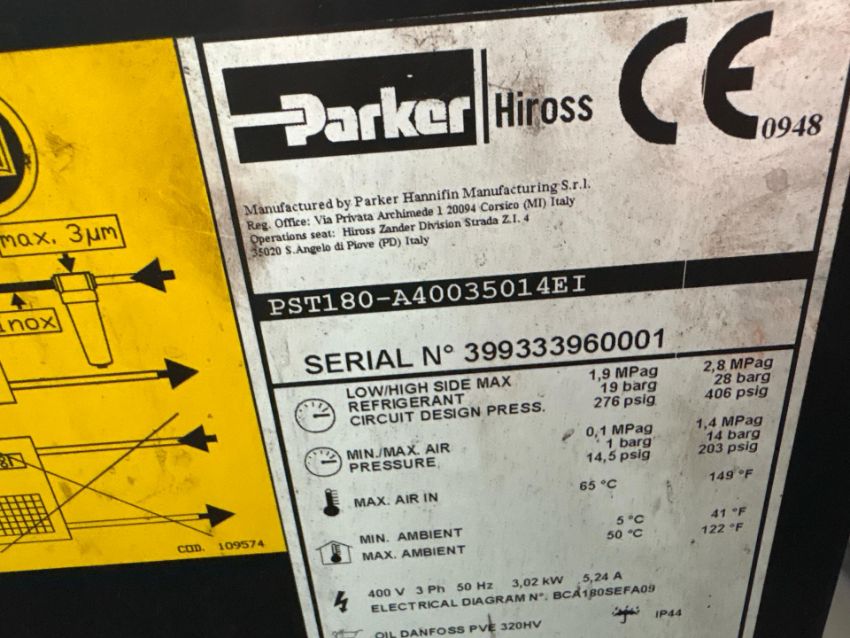Electrical Requirements: 400V 3Ph 50Hz, 3.02 kW, 5.24 A