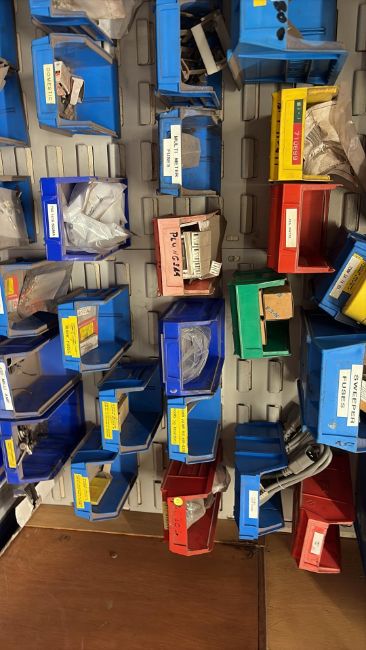 Assorted Bins of Electrical Components