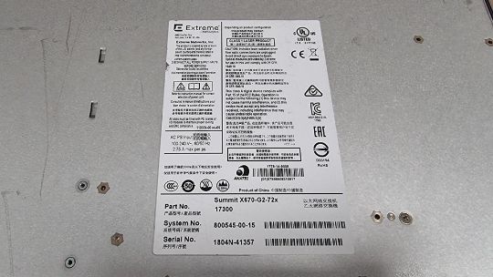 - Extreme Networks X670-G2-72X 72 Port 10GbE SFP+ Network Switch (17300)