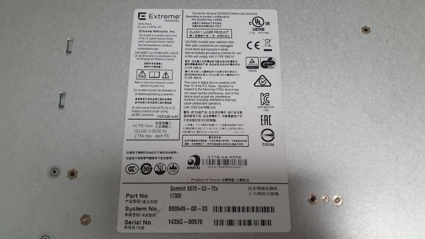 - Extreme Networks X670-G2-72X 72 Port 10GbE SFP+ Network Switch (17300)