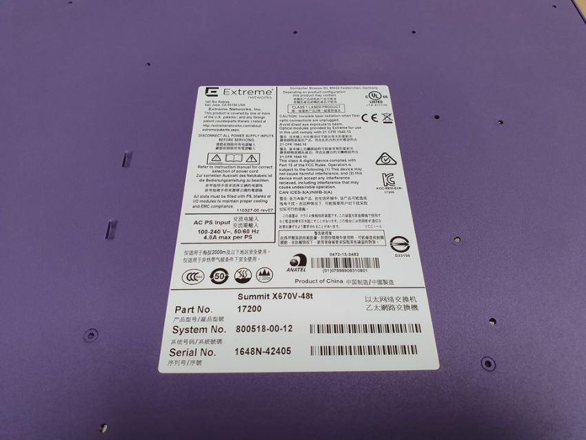 - Extreme Networks X670V-48T 48 Port 10GBase-T Switch (17200)
