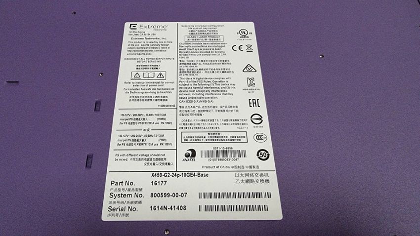 Switch : 800599-00-07 1614N-41408 Rev 07 BootROM: 1.0.2.1 IMG: 30.7.2.1