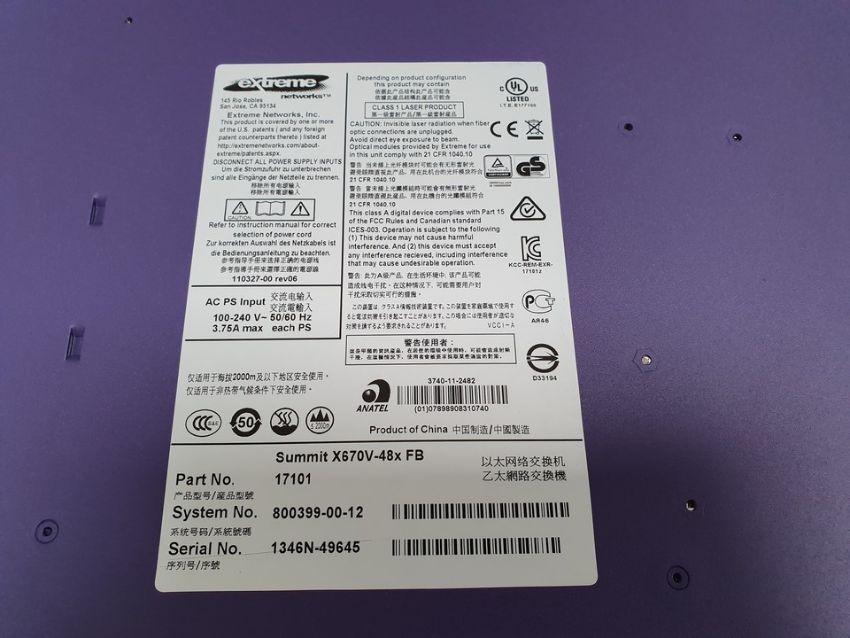 - Extreme Networks X670V-48X 48 Port SFP+ Switch (17101)