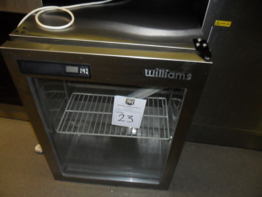 Williams undercounter style fridge with glass door 56cm d 61cm w 79cm h.