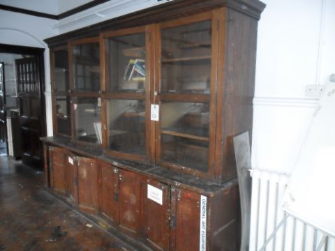 Cabinetry, cupboards, shelving. Beautiful hardwood lovely patina. Possibly mahoghany or Walnut. It is advised that you view the item to make sure you can remove it safely before bidding. 230cm h 313cm w 69cm d