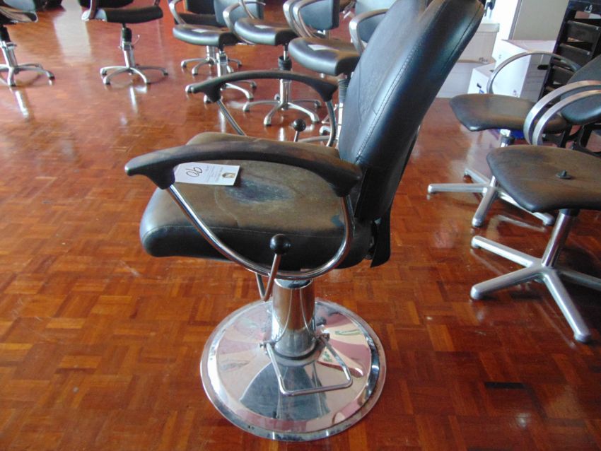 Lot Description: Barbers chair with adjustable height black & chrome on large base