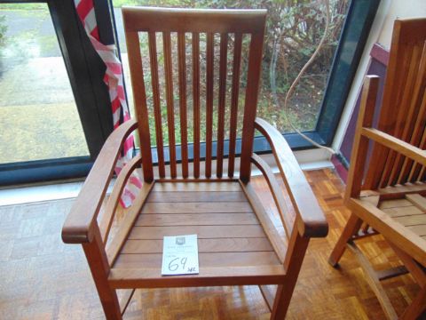 Lot Description: Teak dinning chairs x1 carver chair x11 standard fluted back rest detail, with cream cushions in good condition