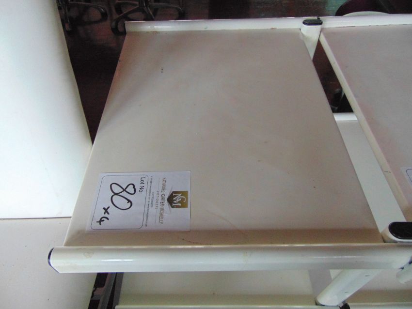 Lot Description: x4 large white metal salon trolleys with trays & lights' Some need to be cleaned, but they are all serviceable,
