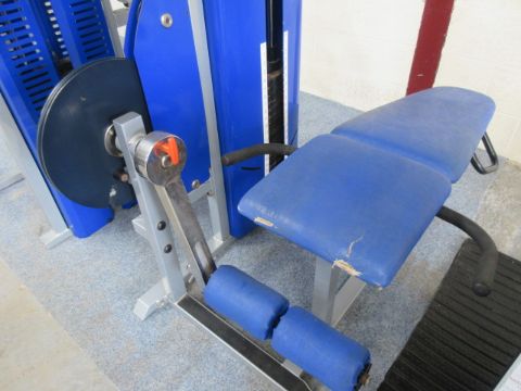 Lot Description: Power Sport Guardian Leg Extension/Leg Curl Combination Machine. Slight rip in upholstery.