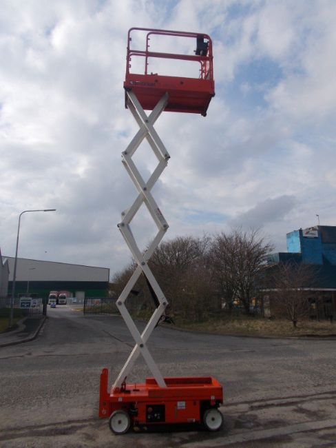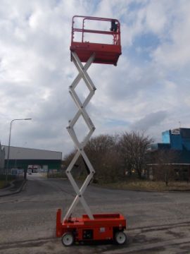 Snorkel S1930E cherry picker, Year 2011 About 7.6 metres working height. Weighs about 1650 kg. Lift capacity about 227kg. Self propelled, Extending platform. Battery powered and on board charger