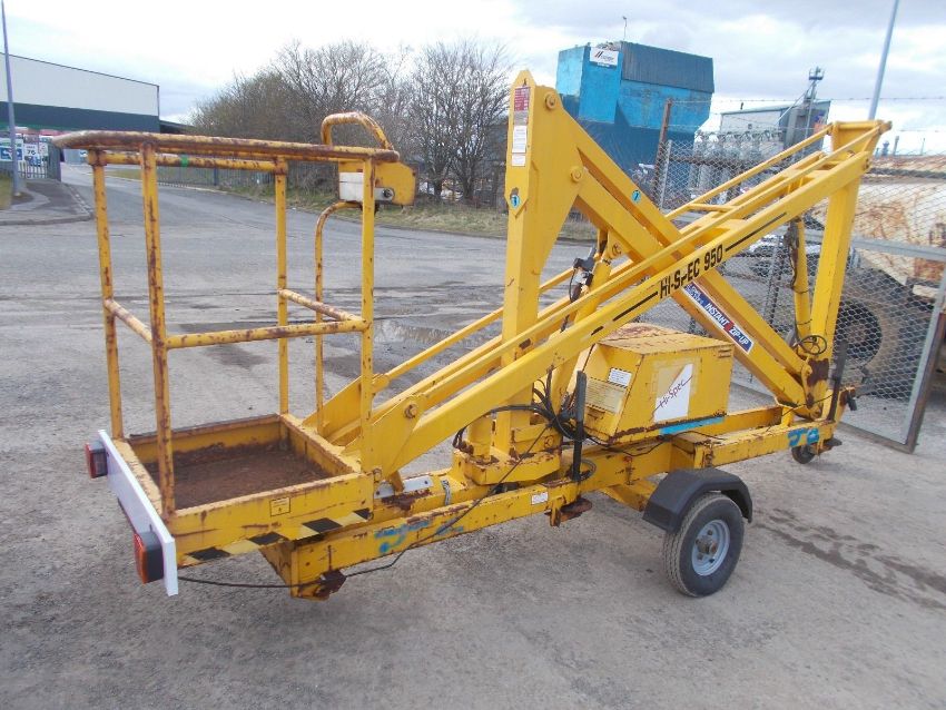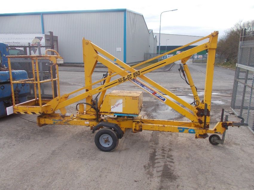 Hi-spec 950 Access Platform Scissor Lift. About 9.5 metre working height. Battery powered New battery. New wheels and tyres. New light board. All safety switches and sirens work