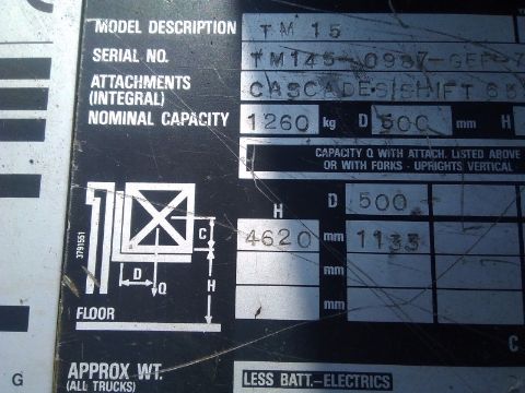 Clarke TM15 3 Wheel Electric Forklift 1.5 TON Fully Serviced With LOLER Certificate 4600 mm. Lift1500kg 2950mm closed mast