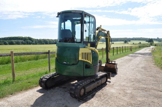 YANMAR VIO30 3.2t Year 2008 Mini Excavator / Digger +3 Buckets. Full cab, zero swing, 3 cylinder Yanmar Diesel Engine 18.4 kW, Twin Speed Tracks, Piped, Quick Hitch, 3 Buckets, Blade, DIMENSIONS (LxHxW)mm: 4325 x 2530 x 1550, Dig Depth: 2800mm, Mass: 3270kg