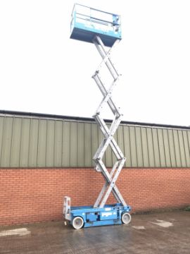 Genie GS2632 scissor lift cherry Picker, 395 hours. Comes with non marking tyres, built in 110/240v charger. Extendable sliding deck, fold down rails. Working height - 9.92m Max platform height - 7.92m Height (stowed) - 2260mm Length (stowed) - 2440mm Width (stowed) - 810mm Weight - 2002kg
