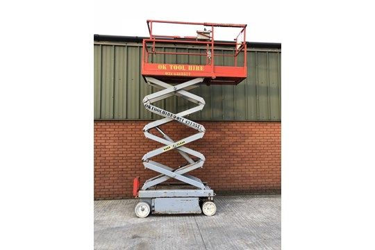 2006 Skyjack SJ3219 scissor lift cherry Picker, low hours Comes with non marking tyres, built in 110/240v charger. Extendable sliding deck, fold down rails. Working height - 7.8m Max platform height - 5.8m Height (stowed) - 2000mm Length (stowed) - 1800mm Width (stowed) - 800mm Weight - 1170kg