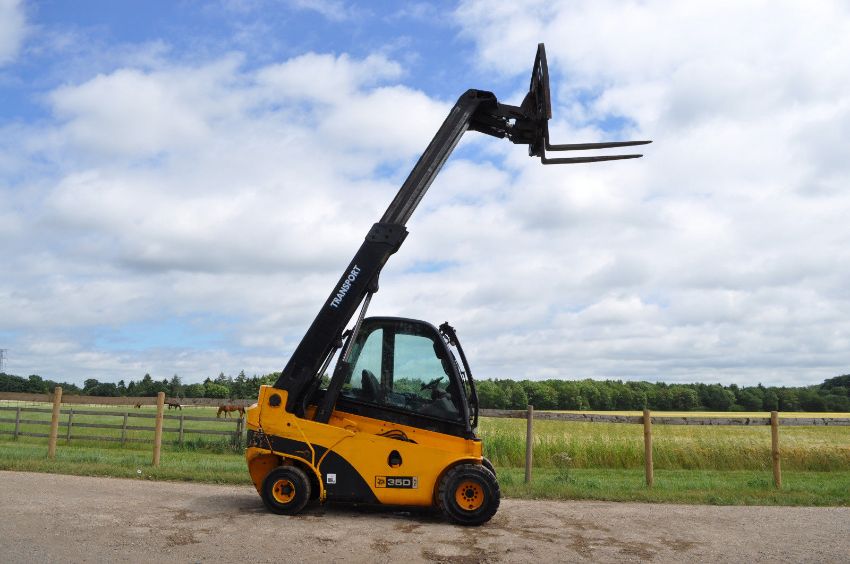 JCB Teletruk TLT35D Year 2006 tlt Teletruck 3.5t 4.4m Telehandler Forklift. 8129 hours, 2WD, Full Cab, 4 Cylinder Diesel Engine 41.7 kW, Side Shift, Forks, Max Lift Height: 4.4m, Max Payload: 3500kg, HEIGHT/WIDTH/LENGTH: 2.2m/1.28m/3.0m, Road Lights, Road Registered, Good Tyres, Weight: 5200kg